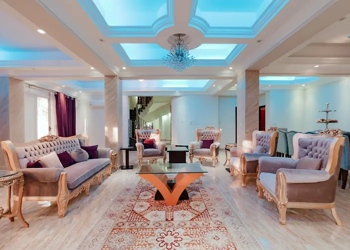 The 4-bathroom villa is nestled in the Al Mamsha El Seyahi district, in the centre of Hurghada. The Hurghada property is situated within a 15-minute drive of such cultural venues as Sand City Hurghada.
